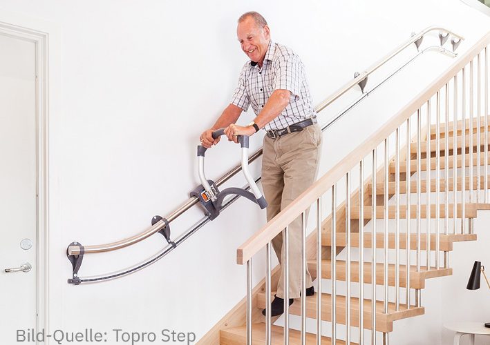 - Die Steighilfe TOPRO Step erleichtert das selbständige Benutzen von Treppen sowohl beim Hinauf- als auch beim Hinuntergehen.